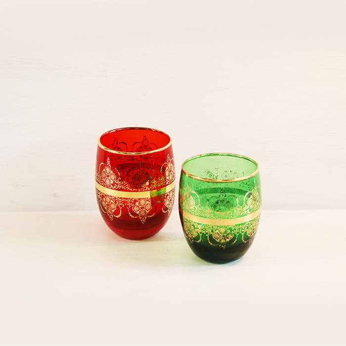 V 42 ゴールド花模様入りカラーグラス ヴィンテージショップメビウス